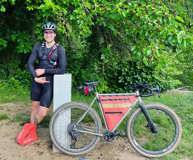 As well, as a queer, trans, nonbinary cyclist (pronouns are they/them thanks!) an unofficial/unorganized endeavor like this is appealing as participation does not require checking off a gender box that doesn’t apply to me and feels icky, or lining up in a gendered pack that I do not identify with. Some gravel races seem to be starting to introduce third gender-neutral fields (which is so cool), but at least so far it seems to be the exception. With an FKT it’s really just you versus the clock and nothing else, and I love the simplicity and purity of that. I don’t have to think about anything but that.